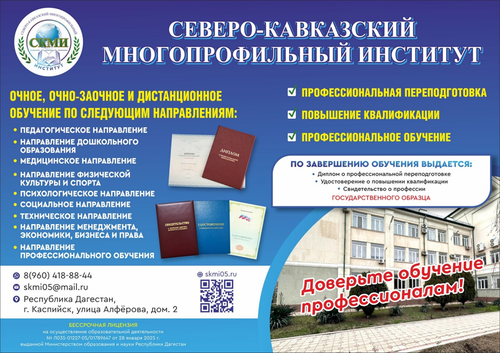 | Лицензия № Л035-01227-05/01789647 от 28 января 2025 г. выданной Министерством образования и науки Республики Дагестан.